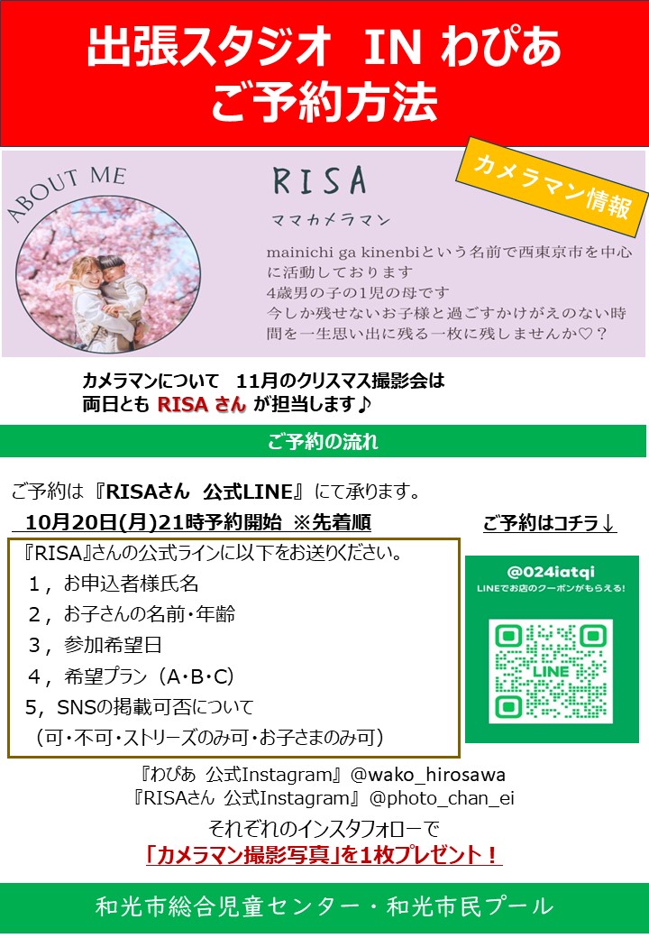 ※カメラマン RISA公式ラインのご登録後、ご予約いただけます