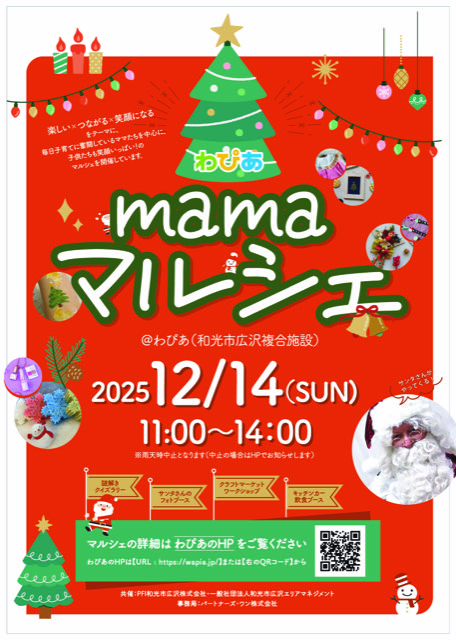 子育てに奮闘しているママたちが楽しめる!子どもたちも笑顔いっぱい!のマルシェです。 サンタクロースと一緒に写真が撮れるフォトスポット、色んなアイテムを見つけられるクラフトマーケットやワークショップなどをお楽しみください!