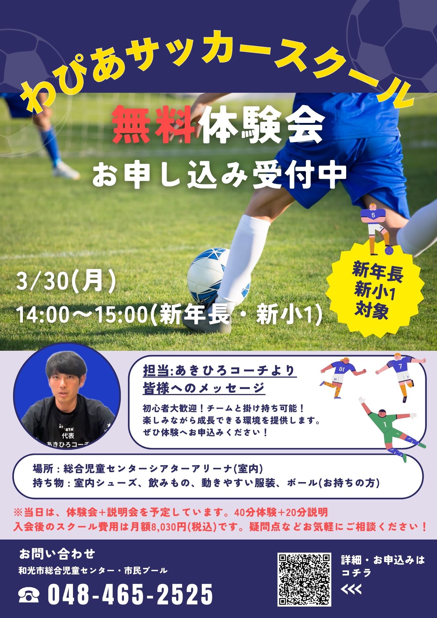 あきひろコーチは、「和光シティサッカースクール」で活動中。
