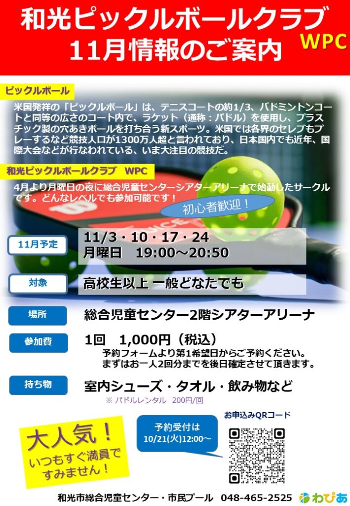 そのピックルボールサークルを毎週月曜日わぴあで実施中!