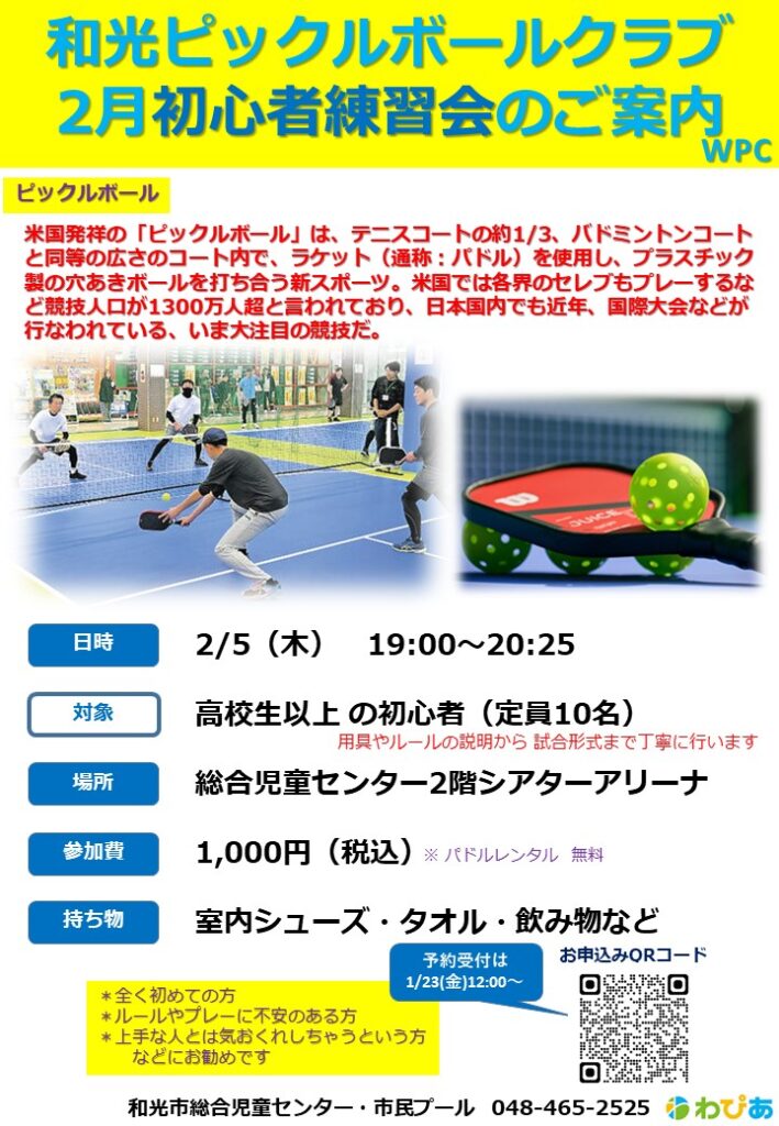 【児童センター】ピックルボール初心者練習会 2月新設!