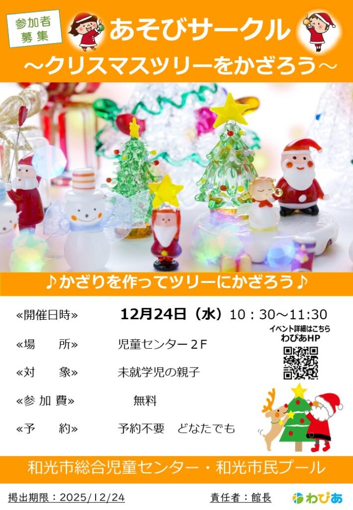 12月のあそびサークルは「クリスマスツリーをかざろう!!」です。