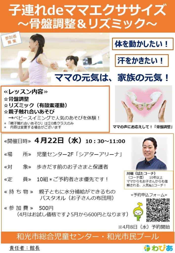 ≪持 ち 物 ≫ 親子ともに水分補給ができるもの、バスタオル(お子さんの布団用なので必要な方のみ)、動きやすい服装で
