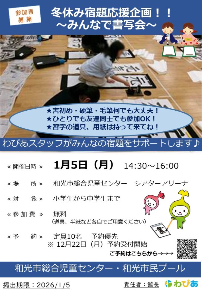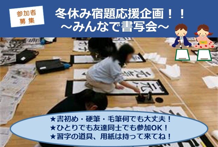 【児童センター】1月5日(月)冬休み宿題応援企画!!~みんなで書写会~