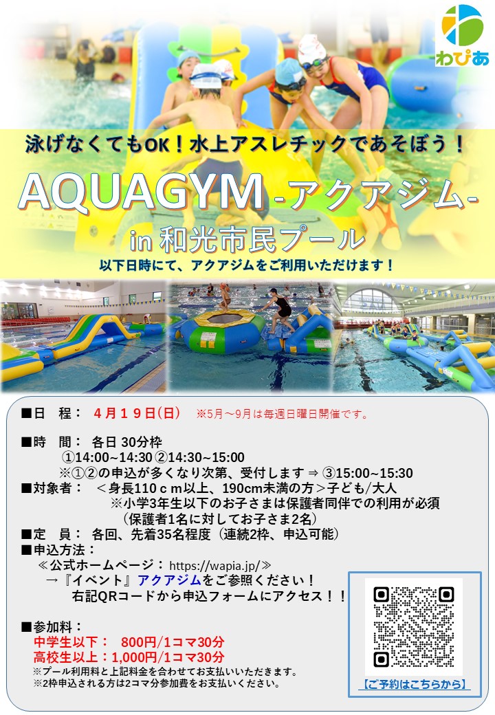 水上アスレティック≪アクアジム≫和光市民プールにて日曜日に開催中!