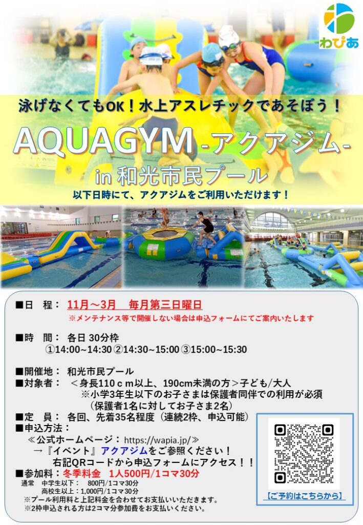 水上アスレティック≪アクアジム≫和光市民プールにて日曜日に開催中!
