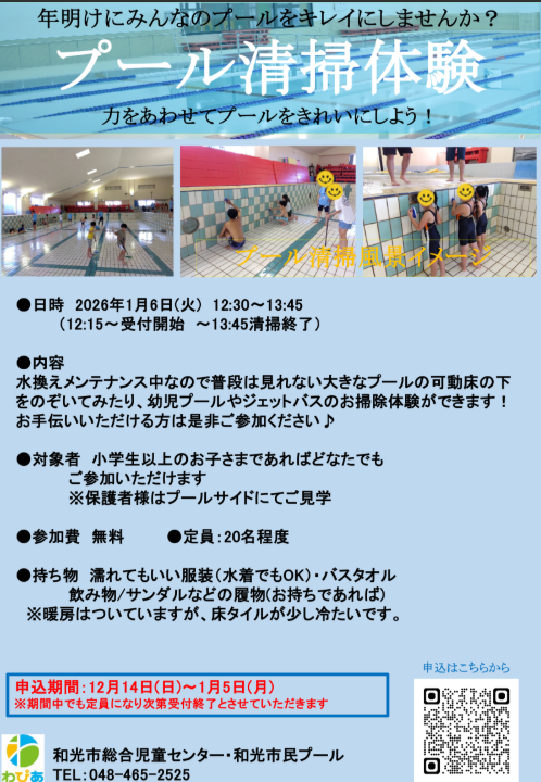 2026年1月6日(火) 新年プール清掃体験を開催いたします。