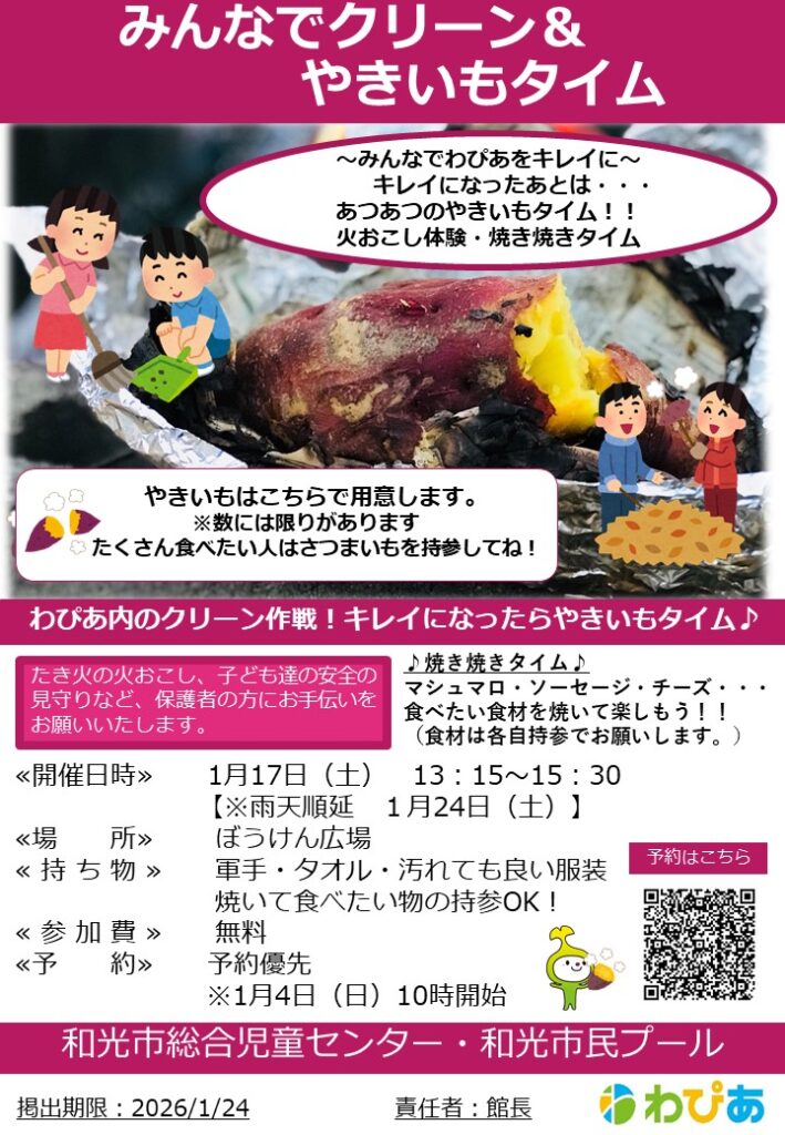 わぴあがキレイになる頃、やきいもの焼きあがり♪